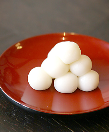 上新粉を煉っただけのシンプルなおだんごを、三角に積み上げた姿が可愛らしい、お月見ならではのお菓子。硬くなってしまう前にお召し上がり下さい。お好みで、和三盆糖・きな粉・つぶ餡・こし餡のトッピングができます。
