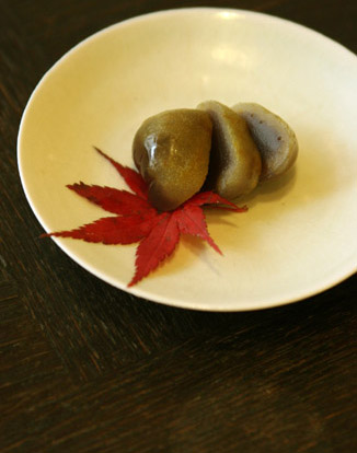ゆずようかん。羊羹を柚子の皮の蜜煮で包みました。