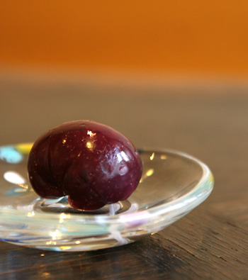 ピオーネを練り込んだ葛餅で、白餡を包みました。