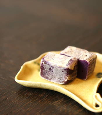 紫芋を煉り上げて作った羊羹に、